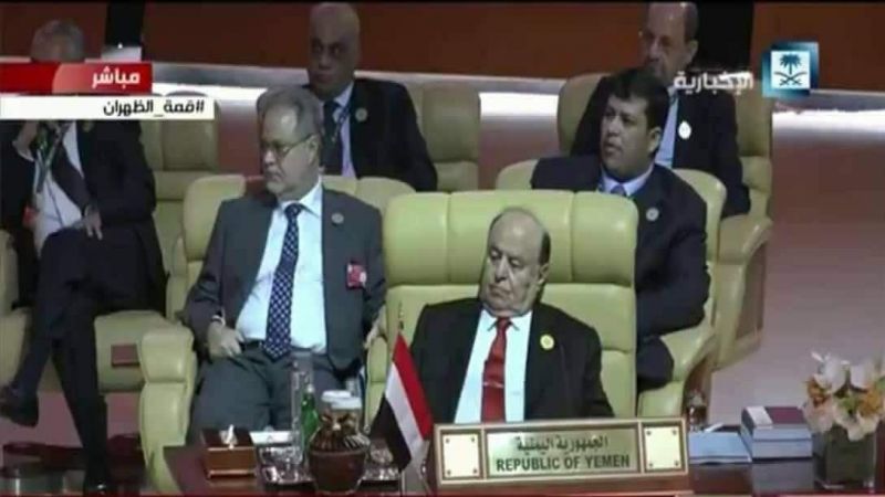 وتابع عبدالسلام ساخرا من حضور الفار هادي قائلا "يحضر القمة واليمن من أبرز القضايا التي يناقشونها، ويتركونه صامتا غير معني بما يجري ويدور نائماً تارة، وتارة أخرى بين النوم واليقظة، لا يلقي كلمة ولا يعبر بشيء فيما ملك البحرين يلقي كلمة هامة عن الوضع في المنطقة واليمن!!!".