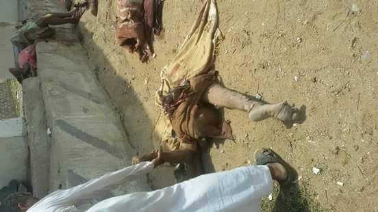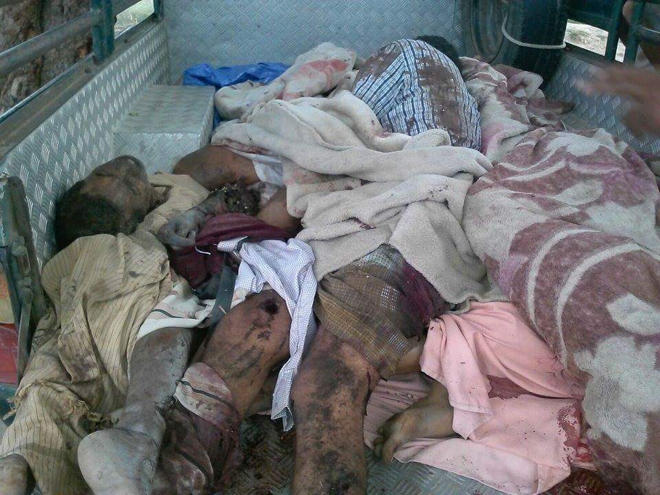 الصور لمشاهد من جريمة العدوان السعودي الامريكي التي استهدف مواطنين في سوق الشغادرة بمحافظة حجه بغارات جوية يوم أمس ادت لأستشهاد 28 مواطنًا.